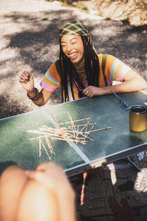 Наши походные столы предназначены для использования вне помещения, например, для отдыха в кемпинге, в саду, на пикнике. Длительное пребывание (в течение нескольких недель) под воздействием УФ-лучей может нанести ей ущерб. Эти изделия не входят в категорию "садовой мебели" и не предназначены для постоянного пребывания на улице. Чтобы обеспечить столу оптимальный срок службы, следует прятать его на хранение, когда он не используется.