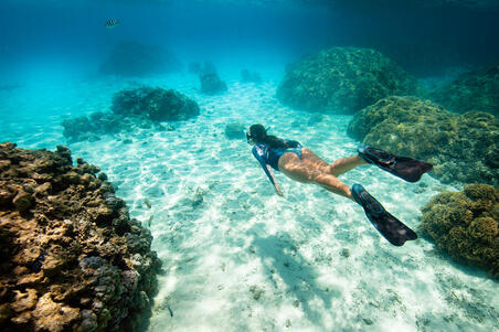 Короткие ласты с довольно жесткой лопастью, обеспечивающей возможность ускорения
