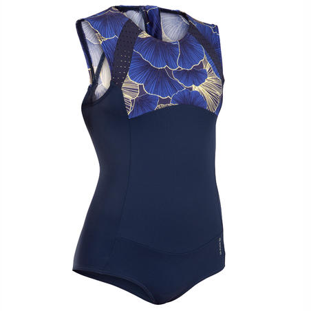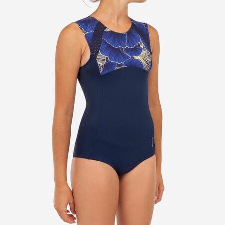 Мы создали этот цельный купальник с длинными рукавами специально для тех юных серфингисток, которые хотят избежать риска потери купальника в мощных волнах. Кроме того, его покрой продуман для защиты тела от трения о покрытие доски для серфинга. Его покрытие обеспечивает защиту от солнца. Этот купальник действительно является ключевой моделью для серфингистки.