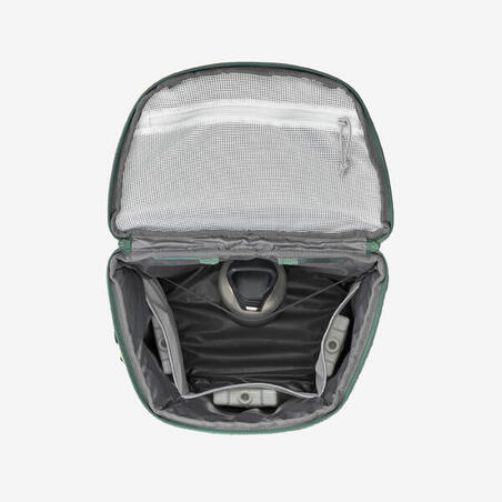 Внутри находятся система для поддержки бутылок в вертикальном положении во время переноски и карман на молнии на уровне шляпы.