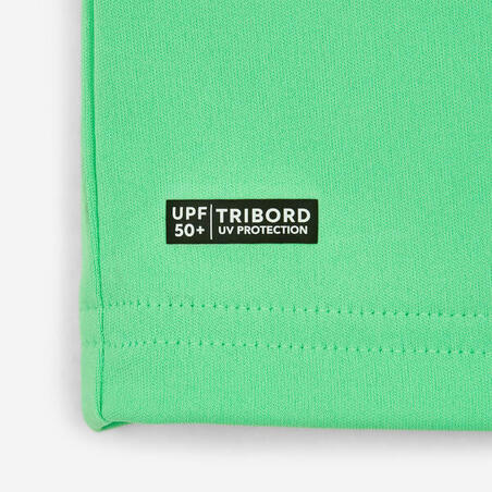 Эта солнцезащитная футболка предотвращает натирание при контакте с доскойСвободный покрой обеспечивает легкость надевания и комфорт в сухом состоянии. Выбирайте модели 100 или 500 облегающего покроя, если Вам важен комфорт одежды во влажном состоянии или Вы собираетесь носить изделие под гидрокостюмом. Доказано уменьшение раздражения при занятиях до 1 ч. Если Вы планируете заниматься серфингом более 1 ч, Вам больше подойдет солнцезащитная футболка 500, она имеет бесшовные вставки под мышками.