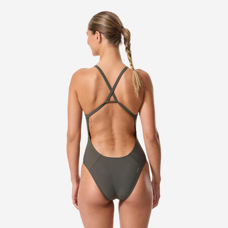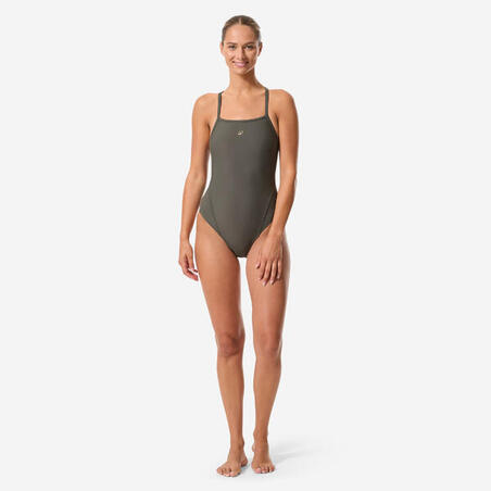 Почувствуйте фиксацию купальника с Х-образной спинкой и тонкими эластичными бретелями.