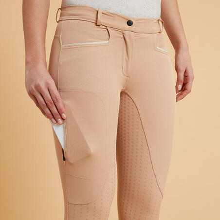 • Бриджі жіночі 580 Light для кінного спорту з повною леєю бежеві