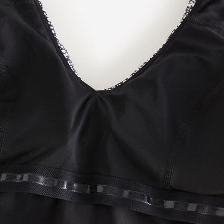 Цей суцільний купальник має вшитий бра зі знімними чашечками. Результат? Відмінна підтримка для мінімізації підстрибування під час тренувань. Знімні чашечки приймають форму твого бюста і можуть бути легко зняті відповідно до уподобань. Завдяки підкладці та силіконовій гумці вшитий бра залишається на місці під час занять плаванням або аквафітнесом.